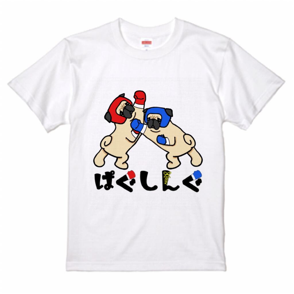 ボクシングに熱中しているパグ達が何とも愛らしいTシャツです。
